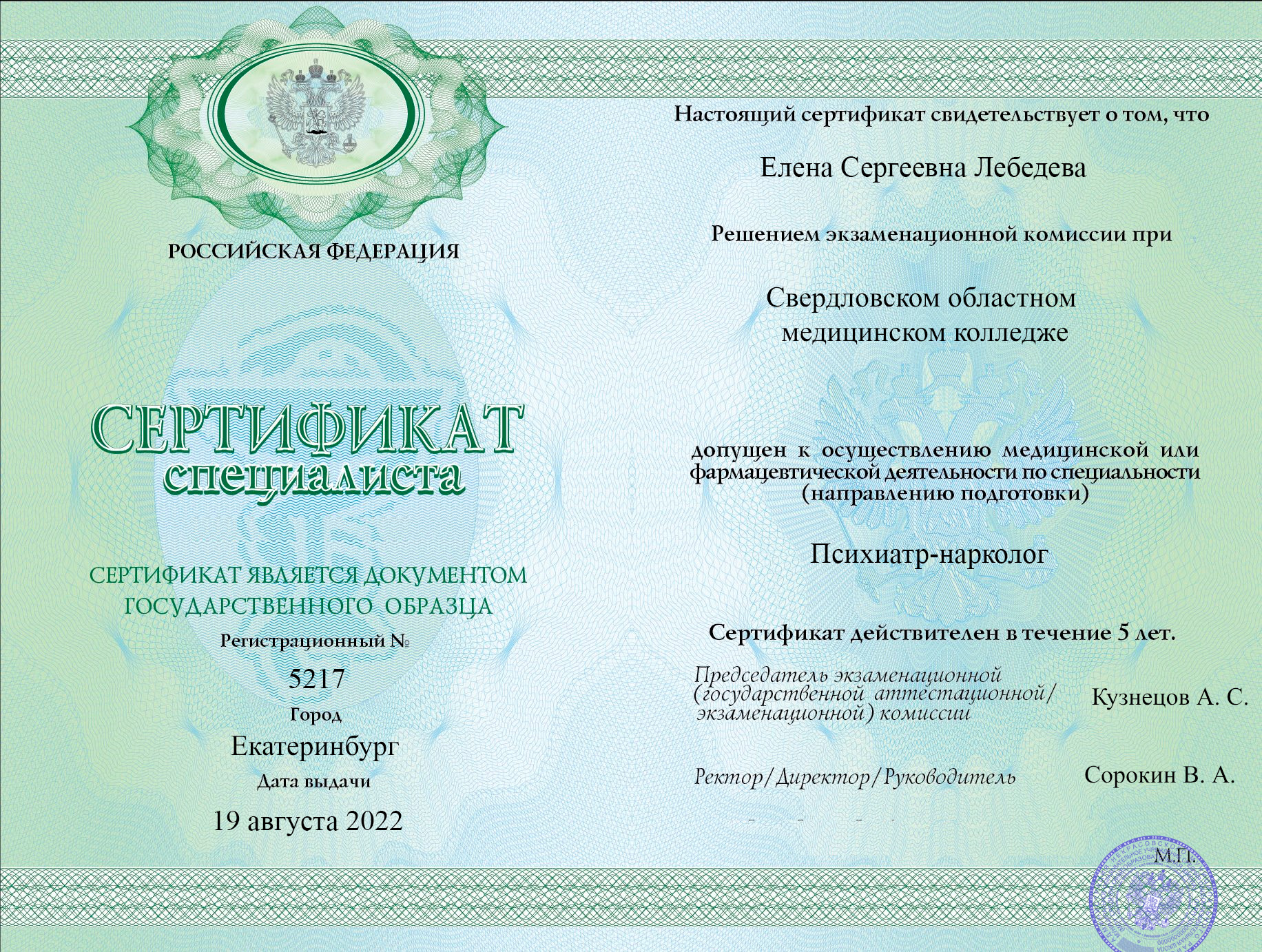 Елена Сергеевна Лебедева врач нарколог клиники доктора Стукаловой в Улётах